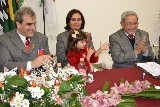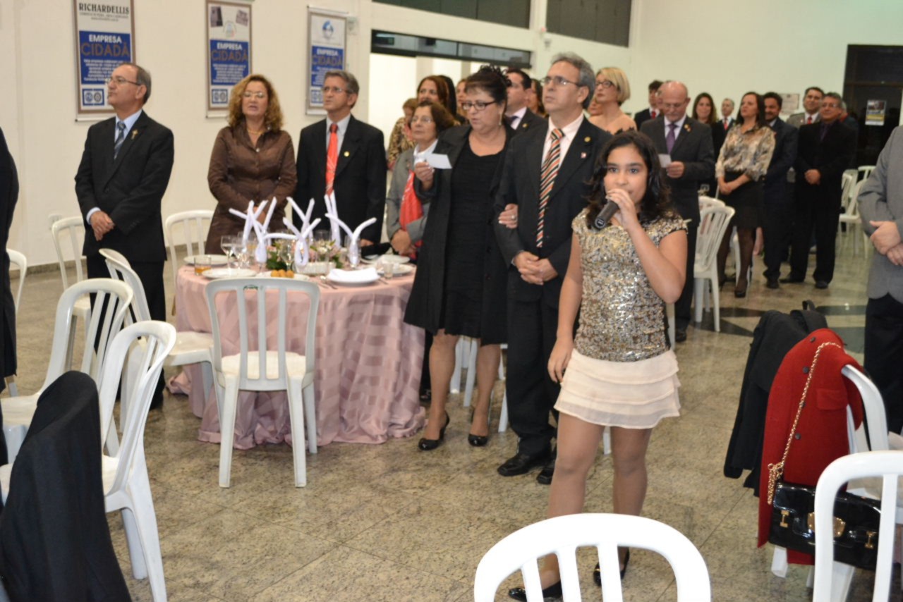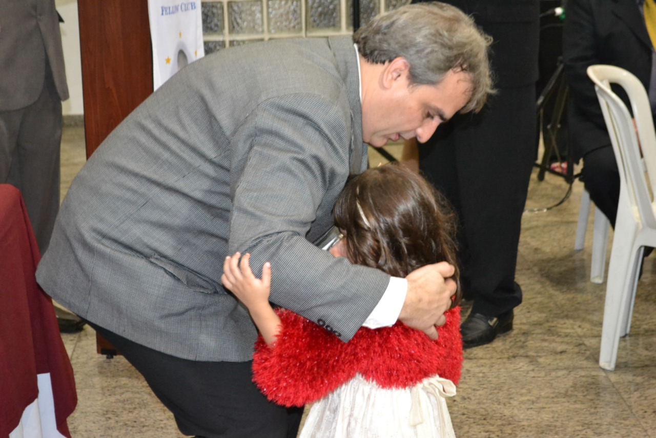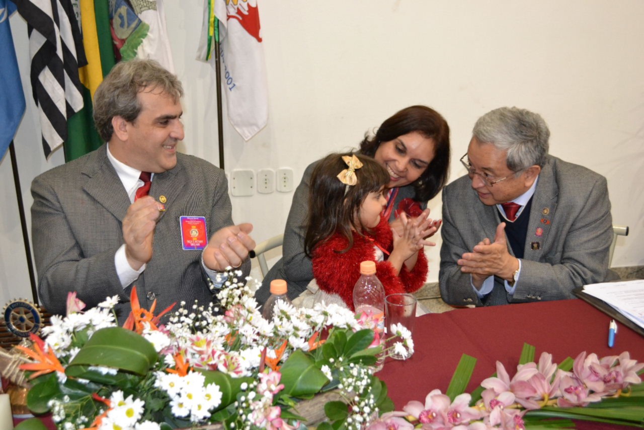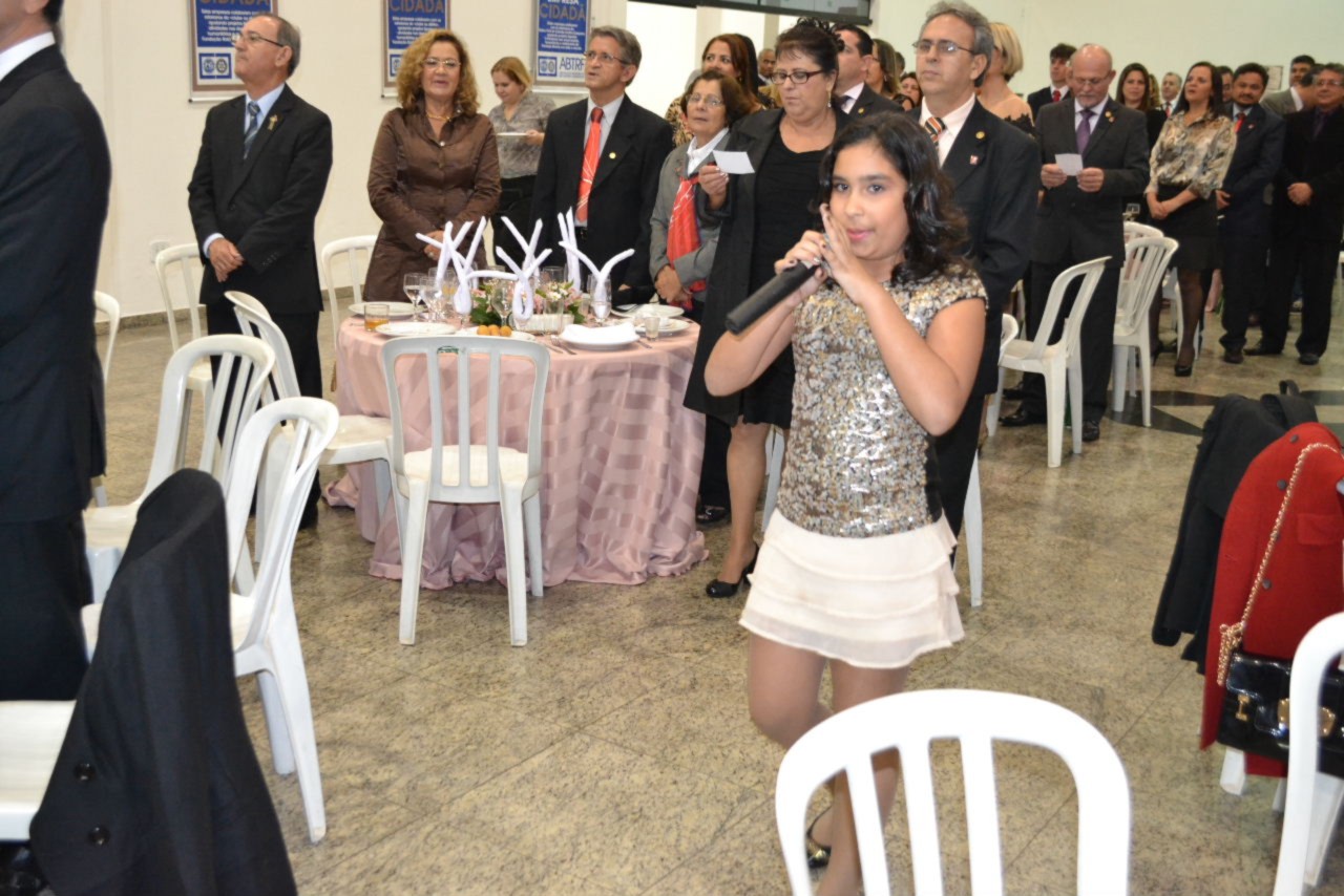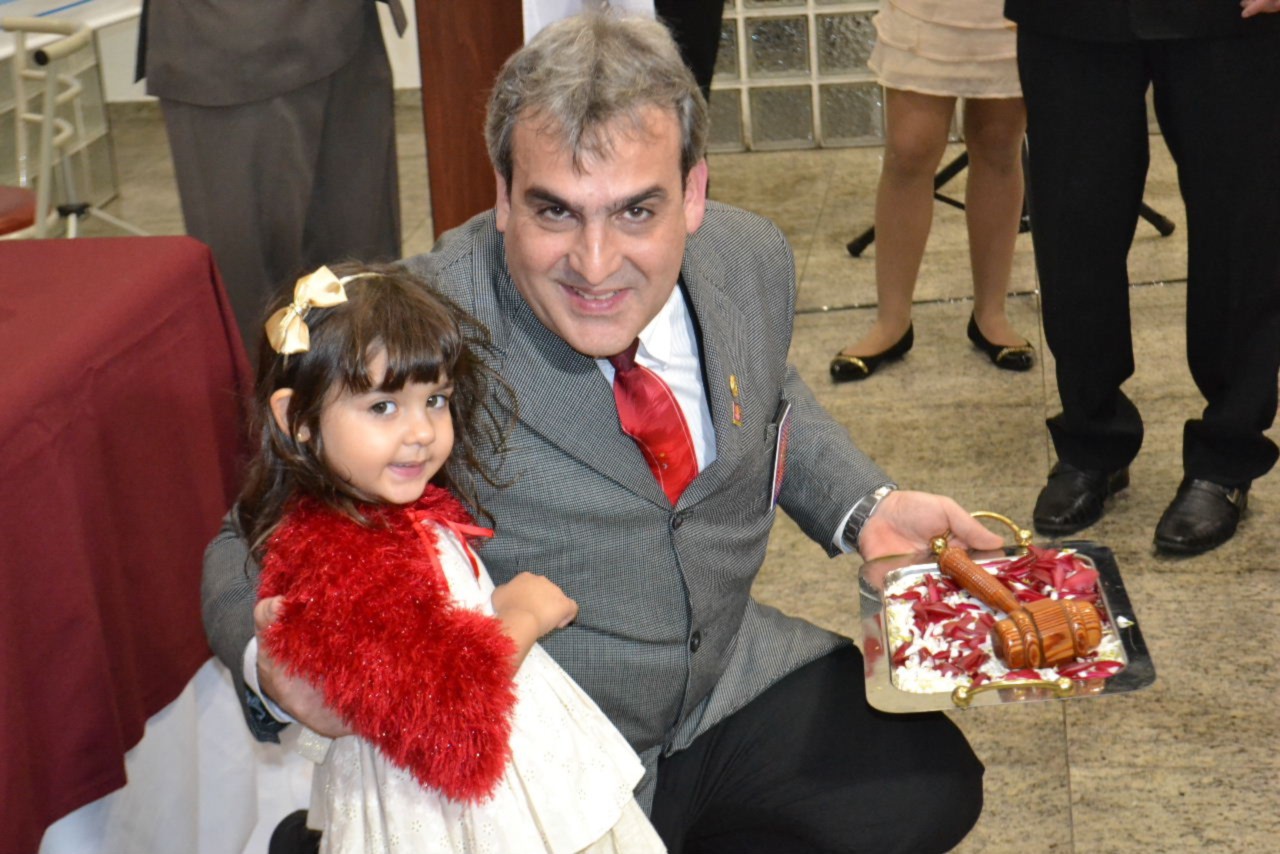 O presidente Márcio se emocionou ao ver suas duas filhas, Maria Fernanda e Maria Júlia, participando da solenidade, com toda graça e alegria. A caçula, Maria Júlia levou o martelo da gestão para a primeira badalada brilhante. Já Maria Fernanda, emocionou os convidados interpretando o hino do Rotary. A mensagem de Selma, esposa do presidente, convida os companheiros e amigos a iluminarem vidas, através da solidariedade. Acredito que em cada gesto e ação solidária, seremos luz, definiu.