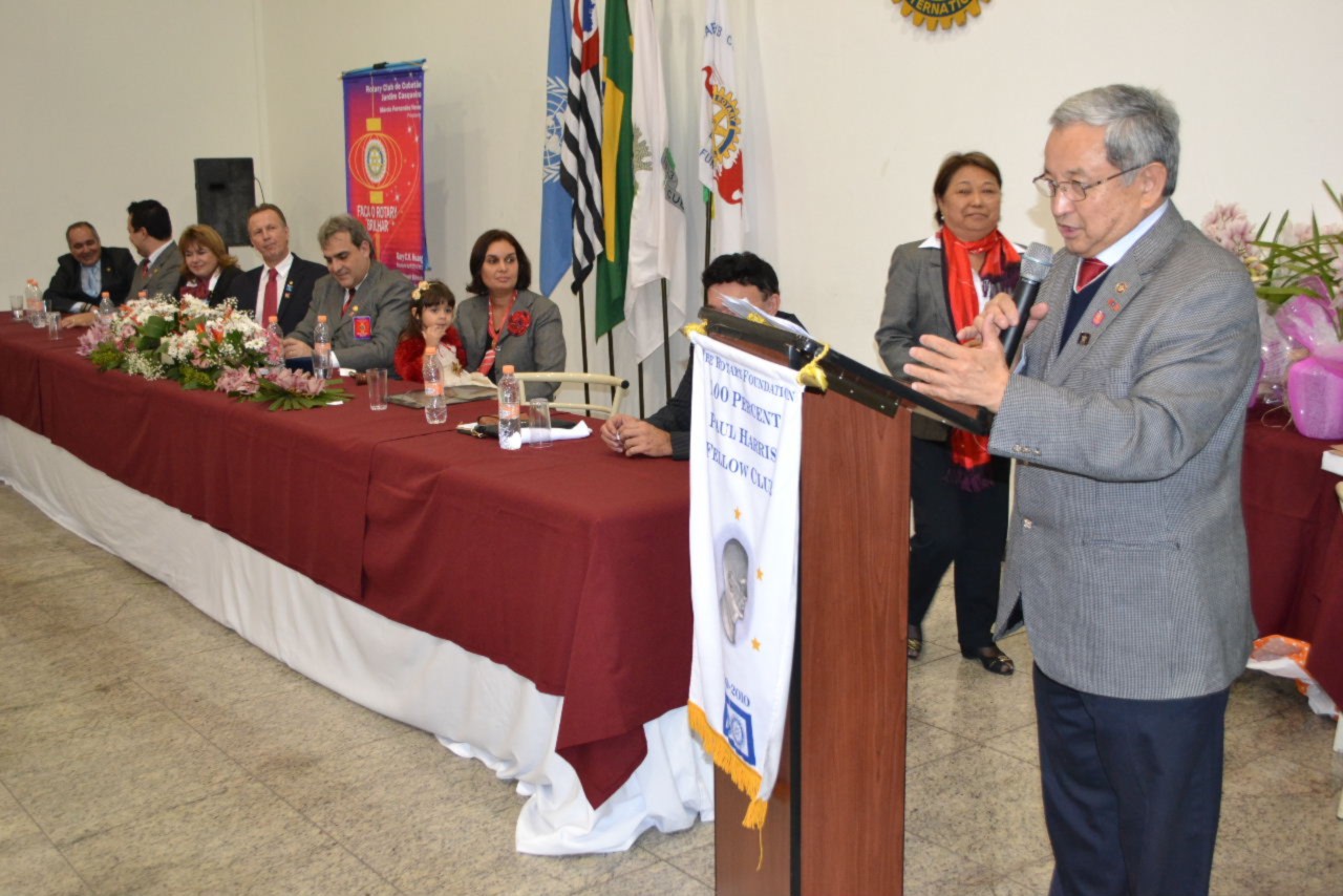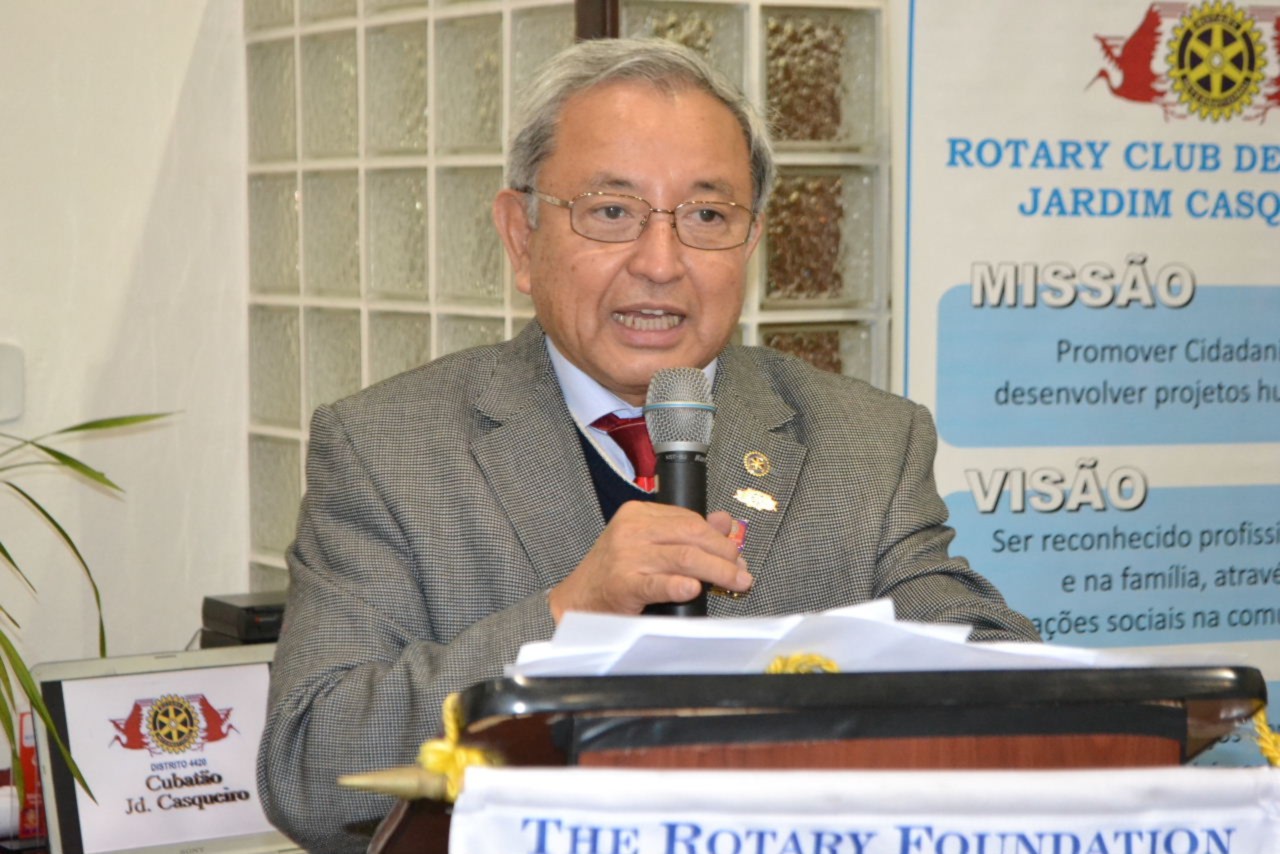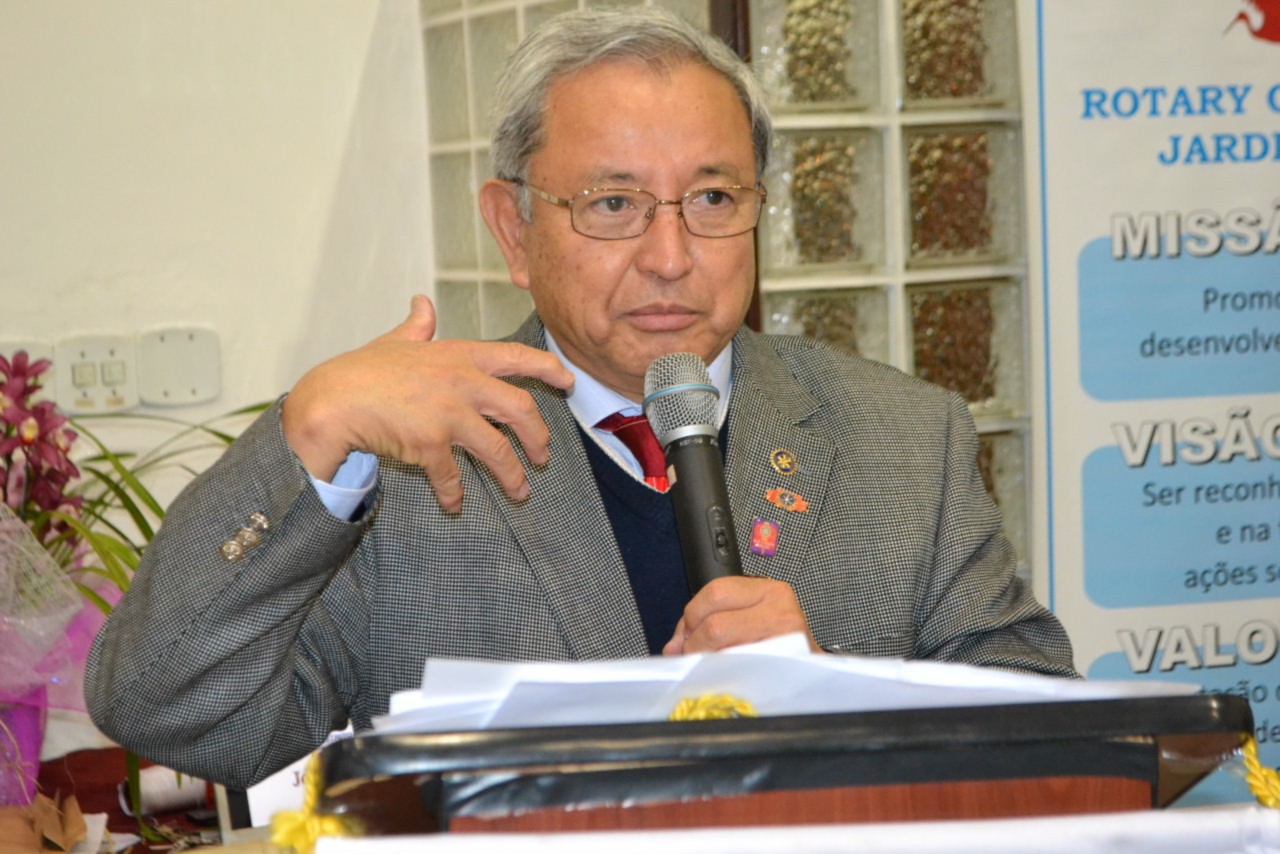 O governador Hiroshi Shimuta fez mais uma apresentação memorável, envolvendo a todos com sua postura alegre e mensagem de reflexão, compartilhada com Suma Shimuta, sua esposa, que também parabenizou o clube pelo início de mais um ano rotário que com certeza fará brilhar a vida de muitas pessoas.