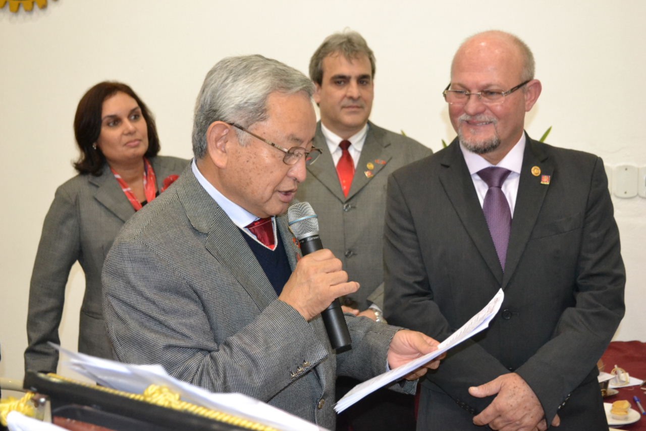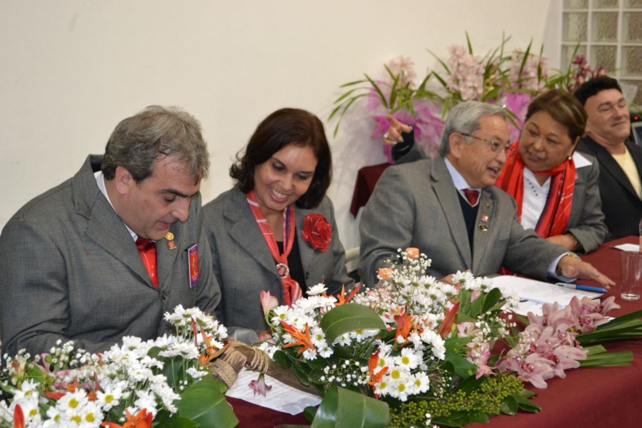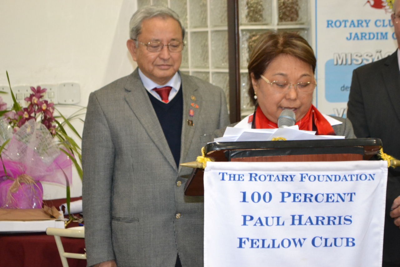 O governador Hiroshi Shimuta fez mais uma apresentação memorável, envolvendo a todos com sua postura alegre e mensagem de reflexão, compartilhada com Suma Shimuta, sua esposa, que também parabenizou o clube pelo início de mais um ano rotário que com certeza fará brilhar a vida de muitas pessoas.