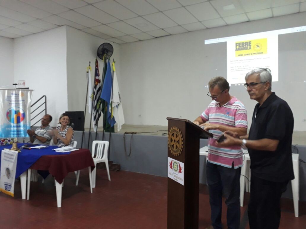 A convite do Rotary Club Jardim Casqueiro, a enfermeira Vanívia Pacheco Vasquez, servidora municipal especialista em Saúde Pública, conversou nesta quinta-feira (25) na Sociedade de Melhoramentos do Jardim Casqueiro sobre Febre amarela: saiba como se proteger.