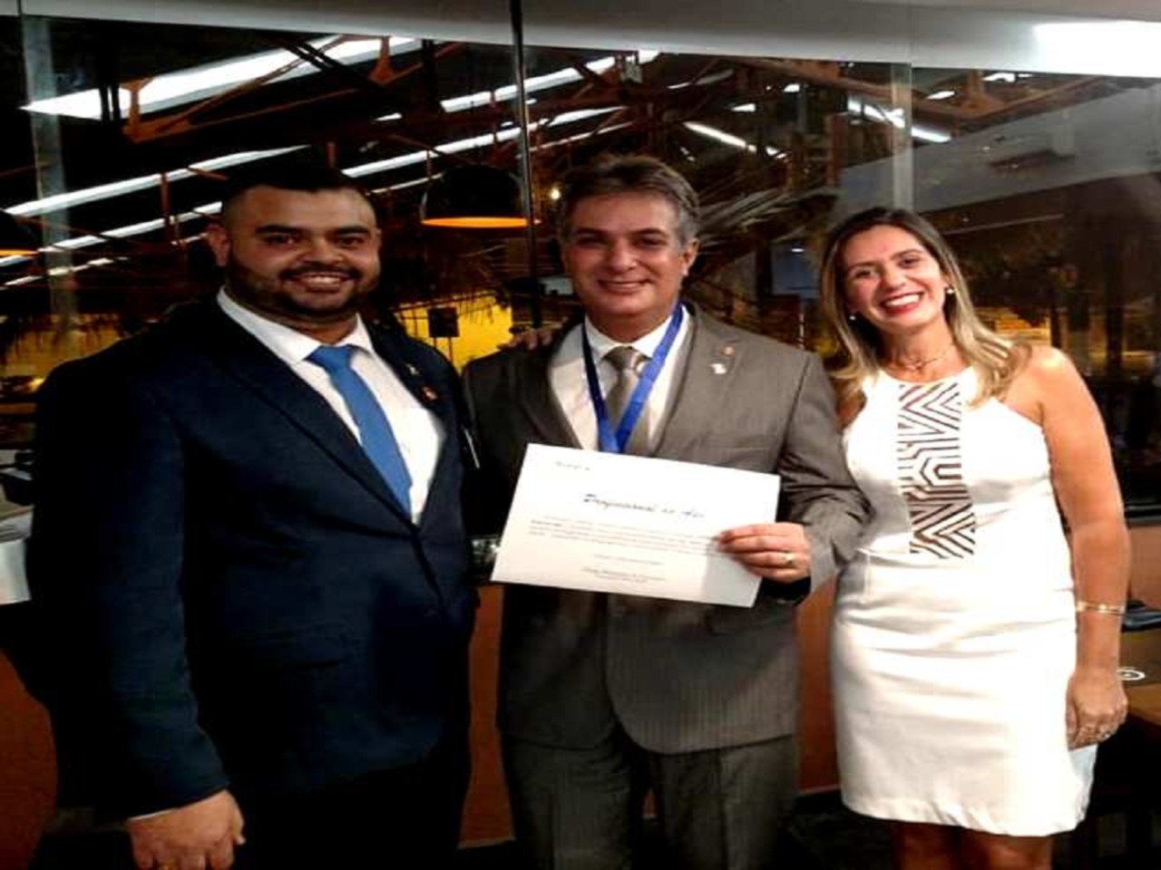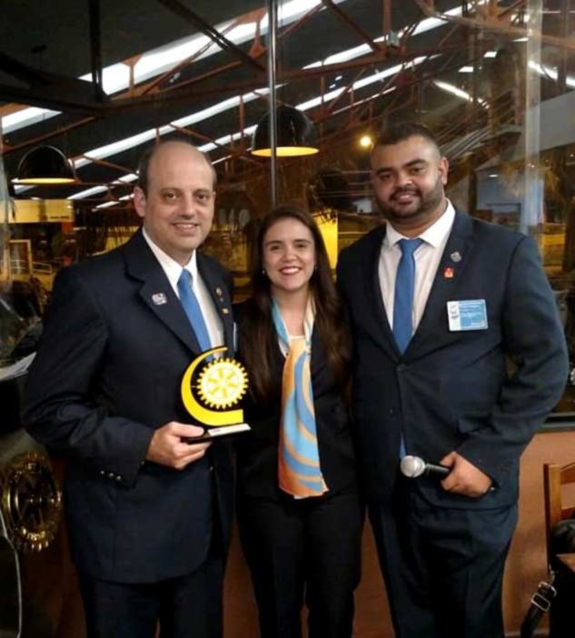 O presidente também apresentou o presidente indicado para o ano rotário de 2020-2021, Diego Gonçalves de Menezes e sua cônjuge Karen. E homenageou os ex-associados e sócios fundadores presentes com a entrega da Medalha Inspiração para um dos sócios fundadores e ex-associado do Clube, Jaime Teodoro.