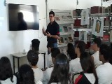 As apresentações foram divididas para duas turmas, alcançando aproximadamente 105 jovens da escola, na faixa etária de 14 a 17 anos.