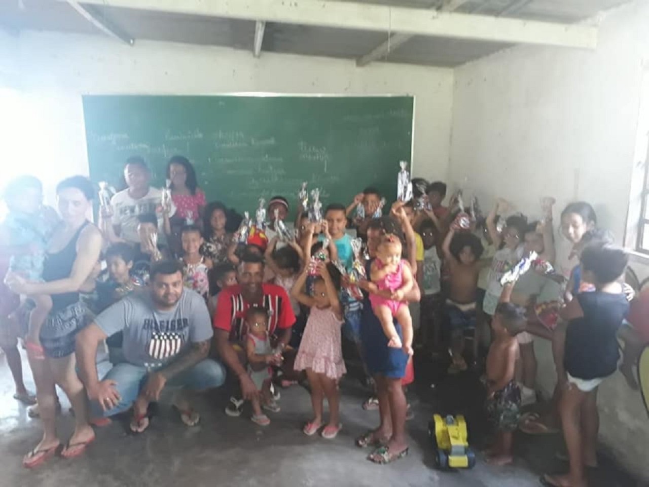 Foram distribuídos aproximadamente 103 kits de chocolates para crianças de até 12 anos de idade.
