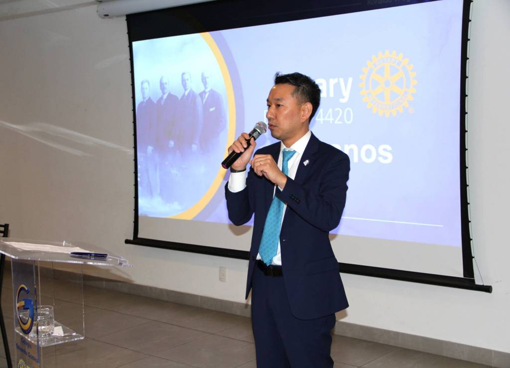 O Governador Ronaldo fez uma belíssima apresentação em homenagem aos 121 anos de fundação do Rotary International, destacando a criação da Fundação de Rotarianos de São Caetano do Sul, mantenedora do Colégio Eduardo Gomes.